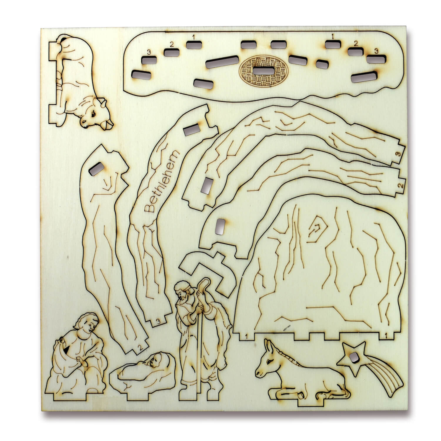 3D-Krippe „Bethlehem“ aus Israel zum Zusammenstecken, 15 cm. Gefertigt in Jerusalem, in einem Unternehmen, das dafür eine spezielle Holz-Laserschnitt-Technologie entwickelte. Die Firma legt Wert darauf, beeinträchtigte Menschen im betriebsinternen Arbeitsprozess zu integrieren. Alle Produkte werden umweltfreundlich hergestellt. Auch zum Verschicken geeignet. Größe Puzzle-Platte: 20,5x19,6 cm; Holzdicke 0,4 cm; Größe zusammengesteckte Krippe: 15x10,5x4 cm