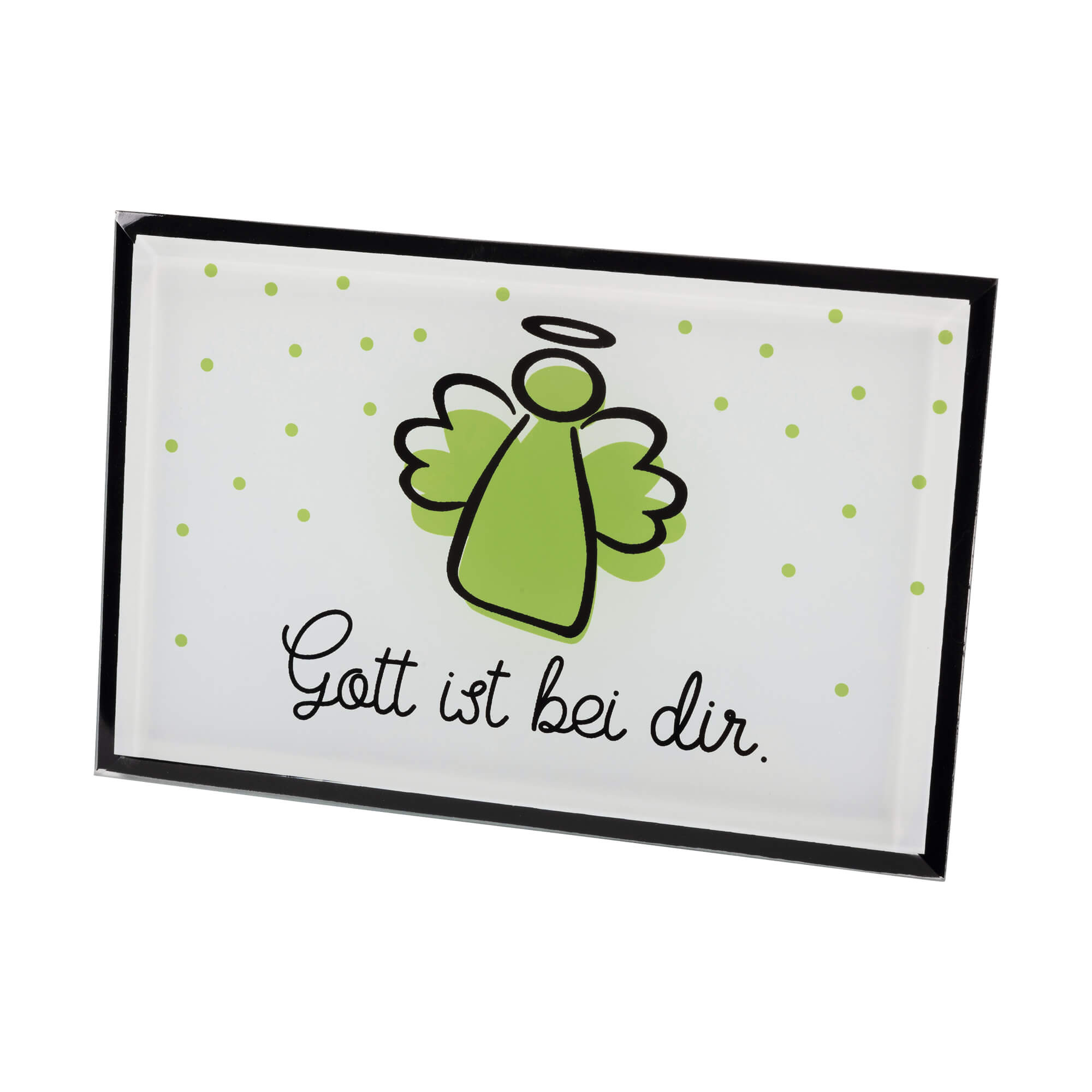 Hübsche Deko aus Glas zum Hinstellen mit Motiv Engel „Gott ist bei dir.“, für Schreibtisch, Fensterbank etc. … Ein schönes Geschenk für Konfirmation, Kommunion, Geburtstag, als kleines Dankeschön oder zum Selbstbehalten. 12x8 cm, in Klarsicht-Einzelverpackung