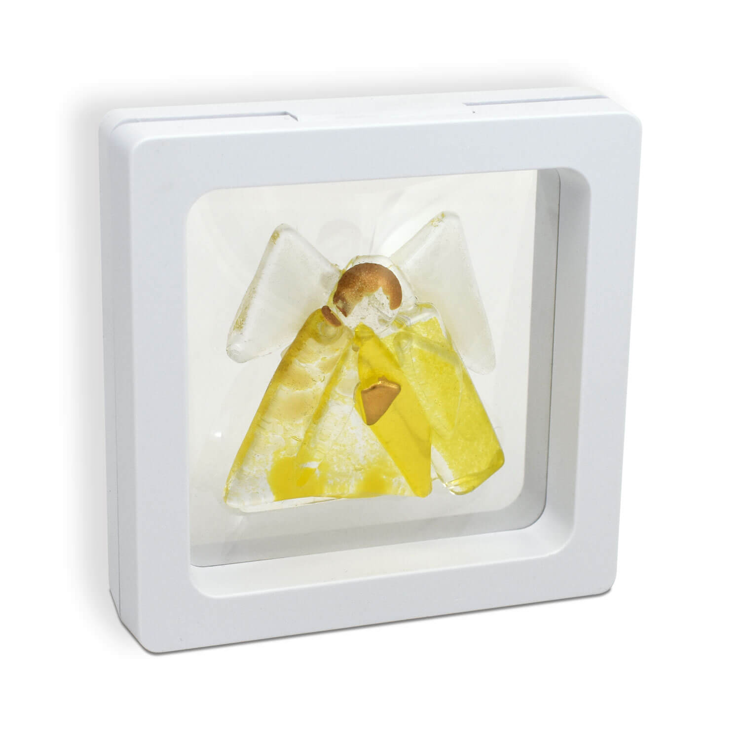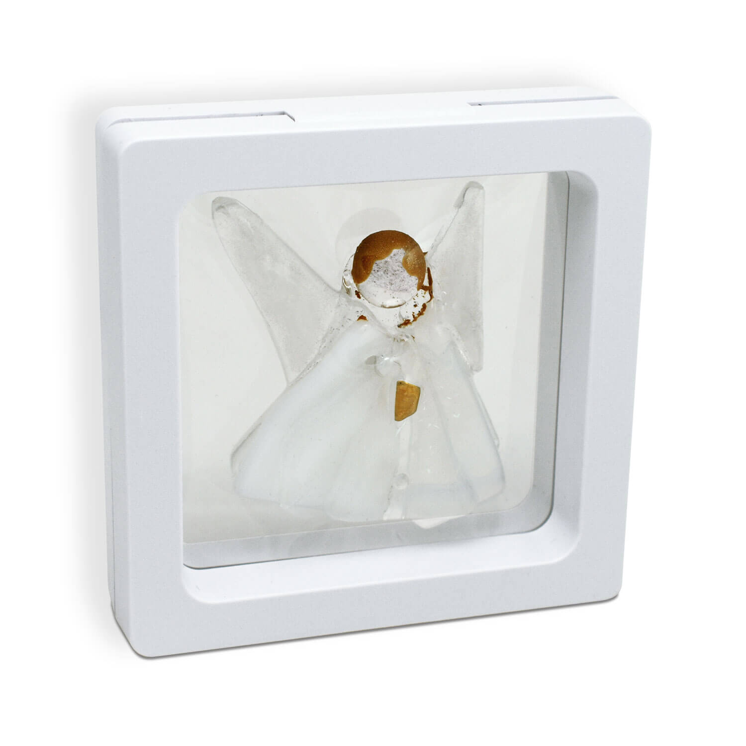 Alle Glasengel werden in liebevoller Handarbeit von einer Künstlerin aus Kirchenglas geformt. Jeder Engel ist einzigartig, keiner gleicht dem anderen ganz genau. Daher kann der Artikel von diesen Abbildungen variieren. Ca. 4x4 cm, dekorativ in einem Rahmen, im Organzabeutel mit Info-Beileger verpackt