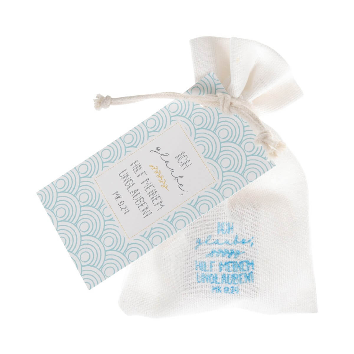- Mit kleiner Karte im Baumwollsäckchen verpackt.