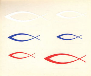Aufkleber-Bogen mit 6 kleinen Fischen - WEISS/BLAU/ORANGE
