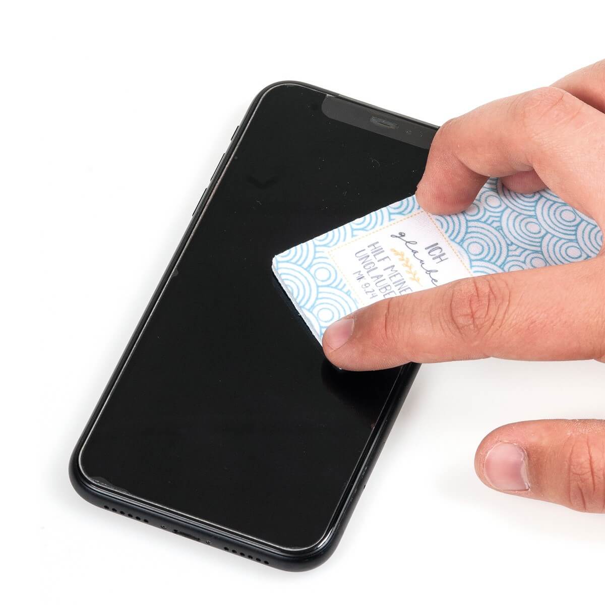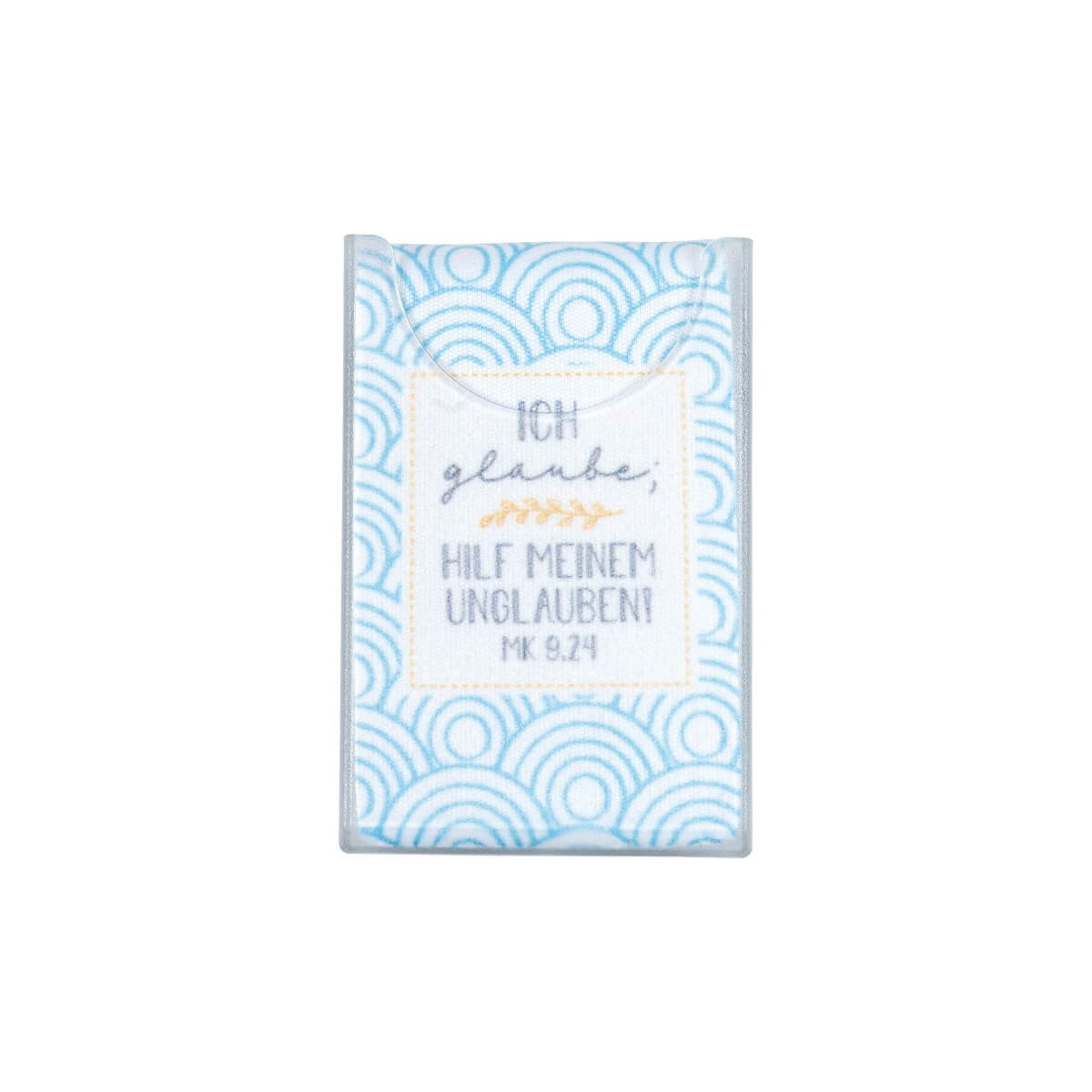 Ideal für unterwegs: Pocket Cleaner mit dem Motiv der Jahreslosung 2020 aus Mikrofaser.