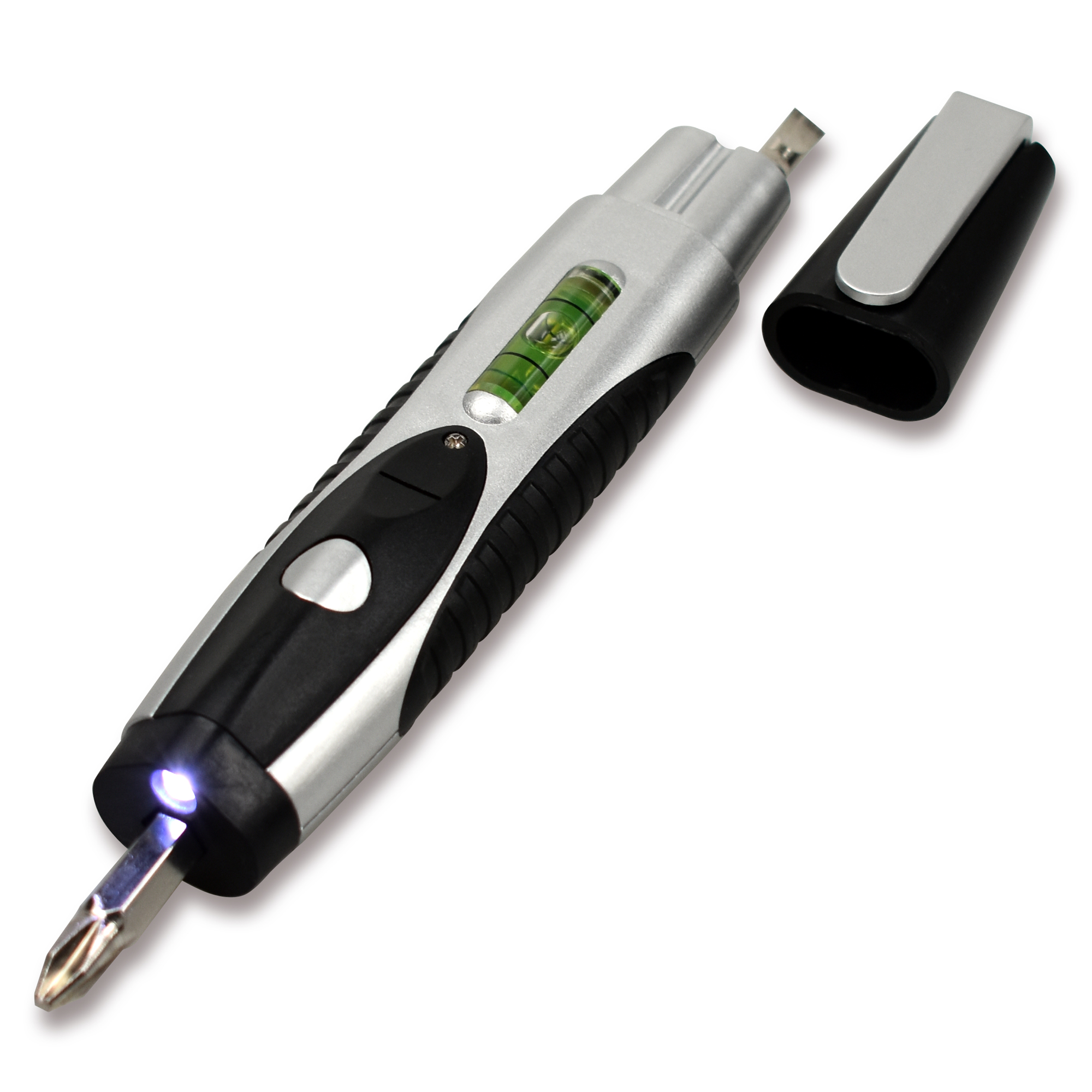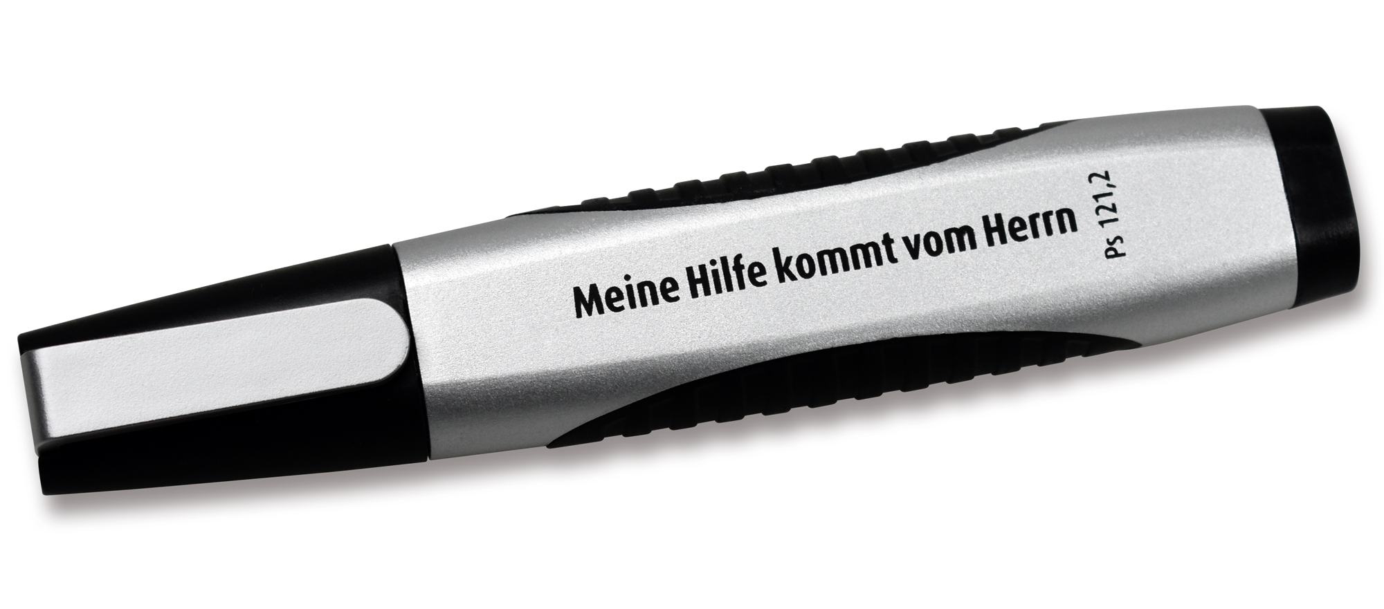 „Meine Hilfe kommt vom Herrn Ps 121,2“, Clip, 14 cm, inkl. Kreuz- und Schraubendreher-Bit, Wasserwaage, LED-Licht, inkl. Batterien
