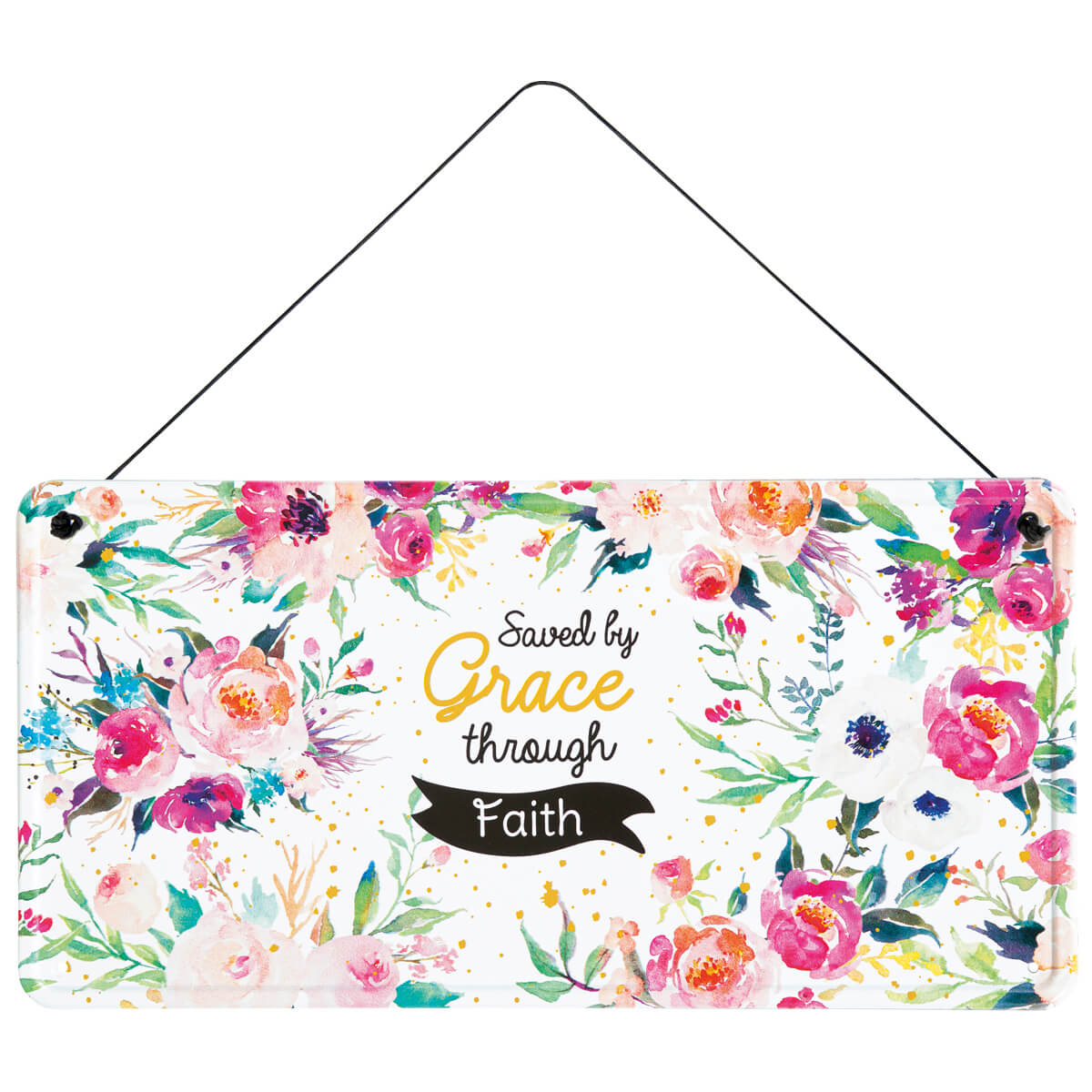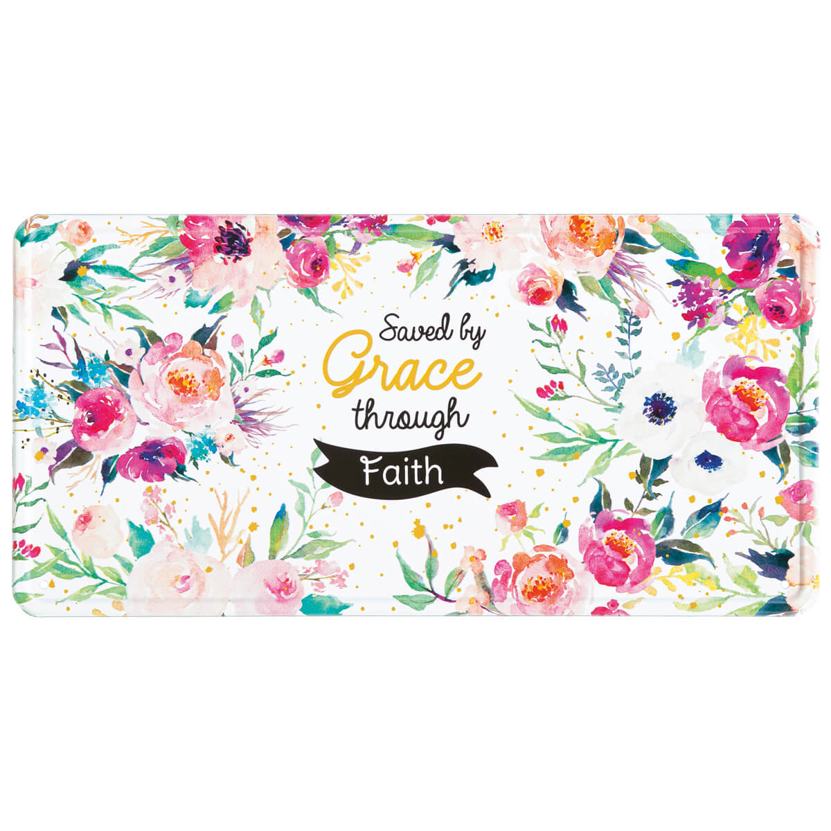 Tolle Deko im Vintagedesign: Metallschild Grace mit Blumendesign und Text "Saved by Grace".