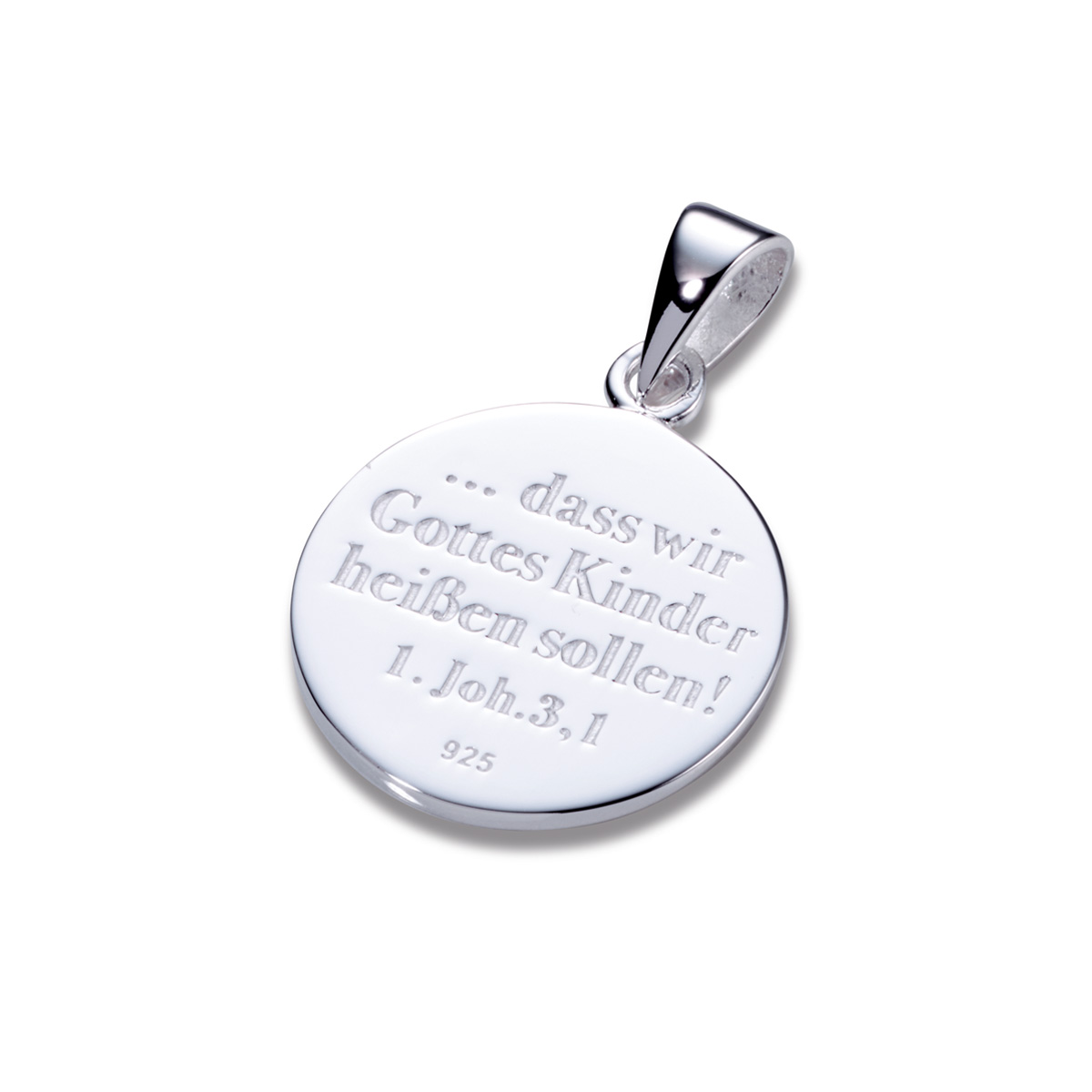 Auf der Vorderseite mit Krone und Schriftzug "Königskind" und auf der Rückseite mit Text: ..das wir Gottes Kinder heißen sollen!