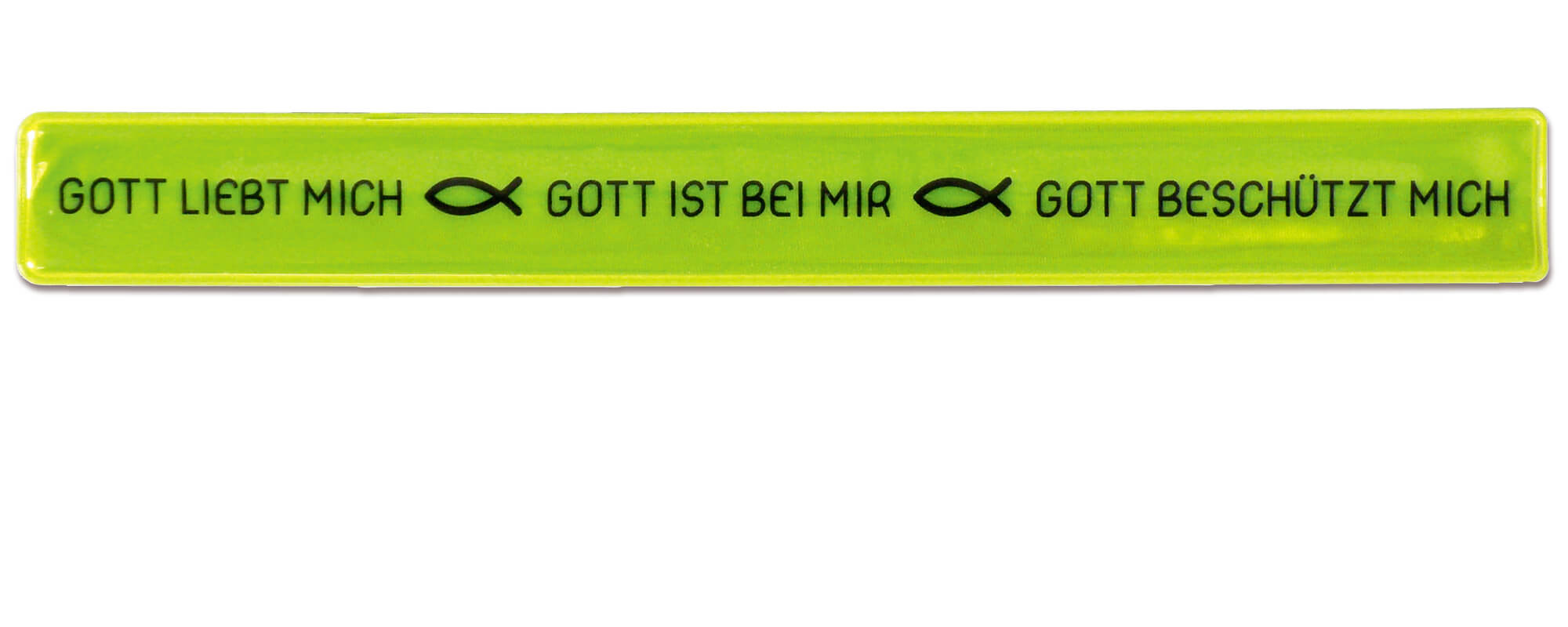 In Neonfarbe reflektierendes Armband, welches sich automatisch um das Handgelenk wickelt. 22 cm Länge, Farbe Gelb