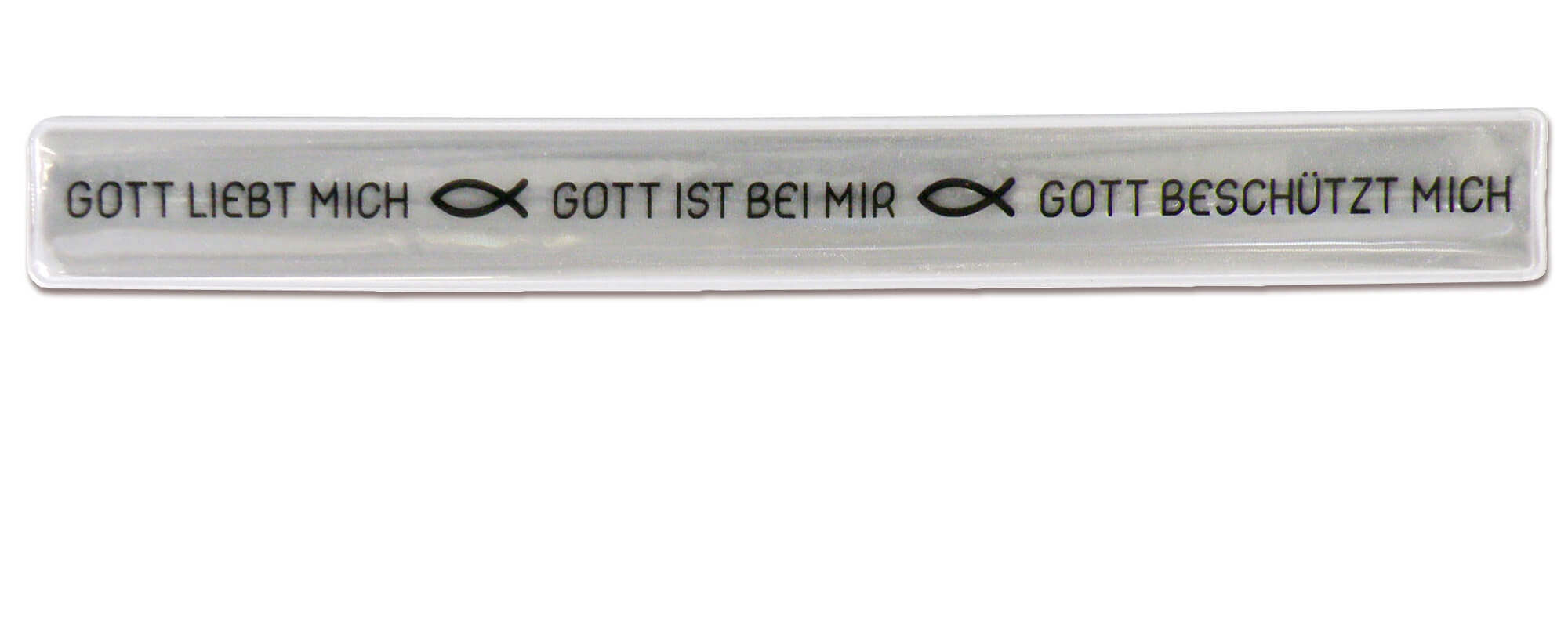 In Neonfarbe reflektierendes Armband, welches sich automatisch um das Handgelenk wickelt. 22 cm Länge, Farbe Grau