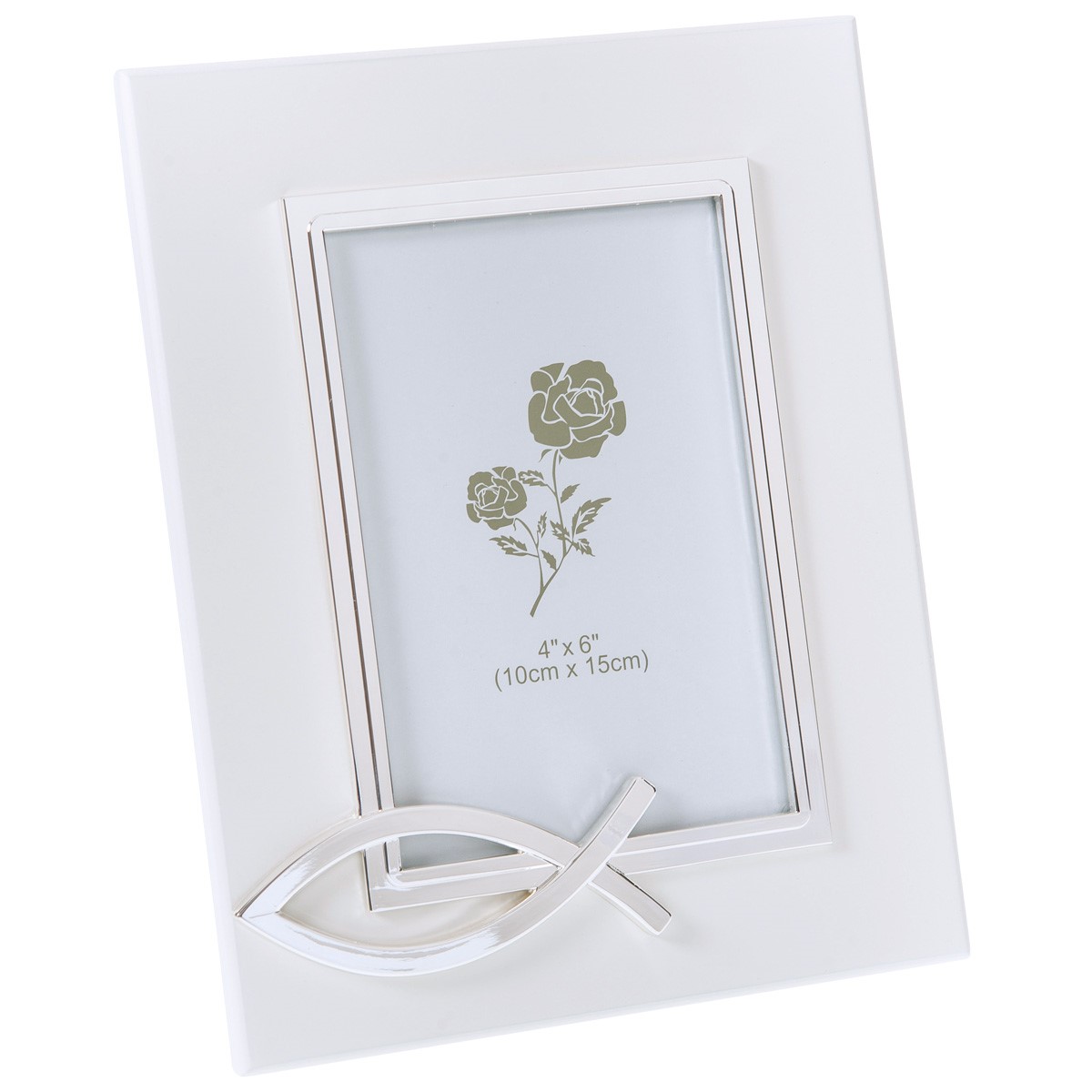 Fotorahmen aus MDF, das Fischsymbol aus Metall, zum Aufstellen.