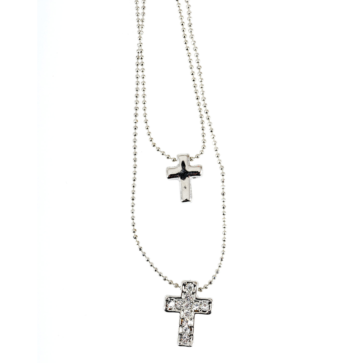 Trendige Halskette "Kreuze". Eine Kette silberfarben mit "Doppelkettendesign". Mit zwei unterschiedlichen Kreuzen, eins glänzend poliert,