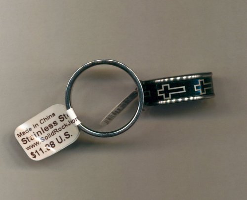 Edelstahlring, schwarz umrandet mit Motiv Kreuz