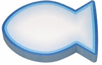 Praktischer Haftnotizblock in Fischform gestanzt, mit blauer Außenkontur, 50 Blatt, 8x5,5 cm