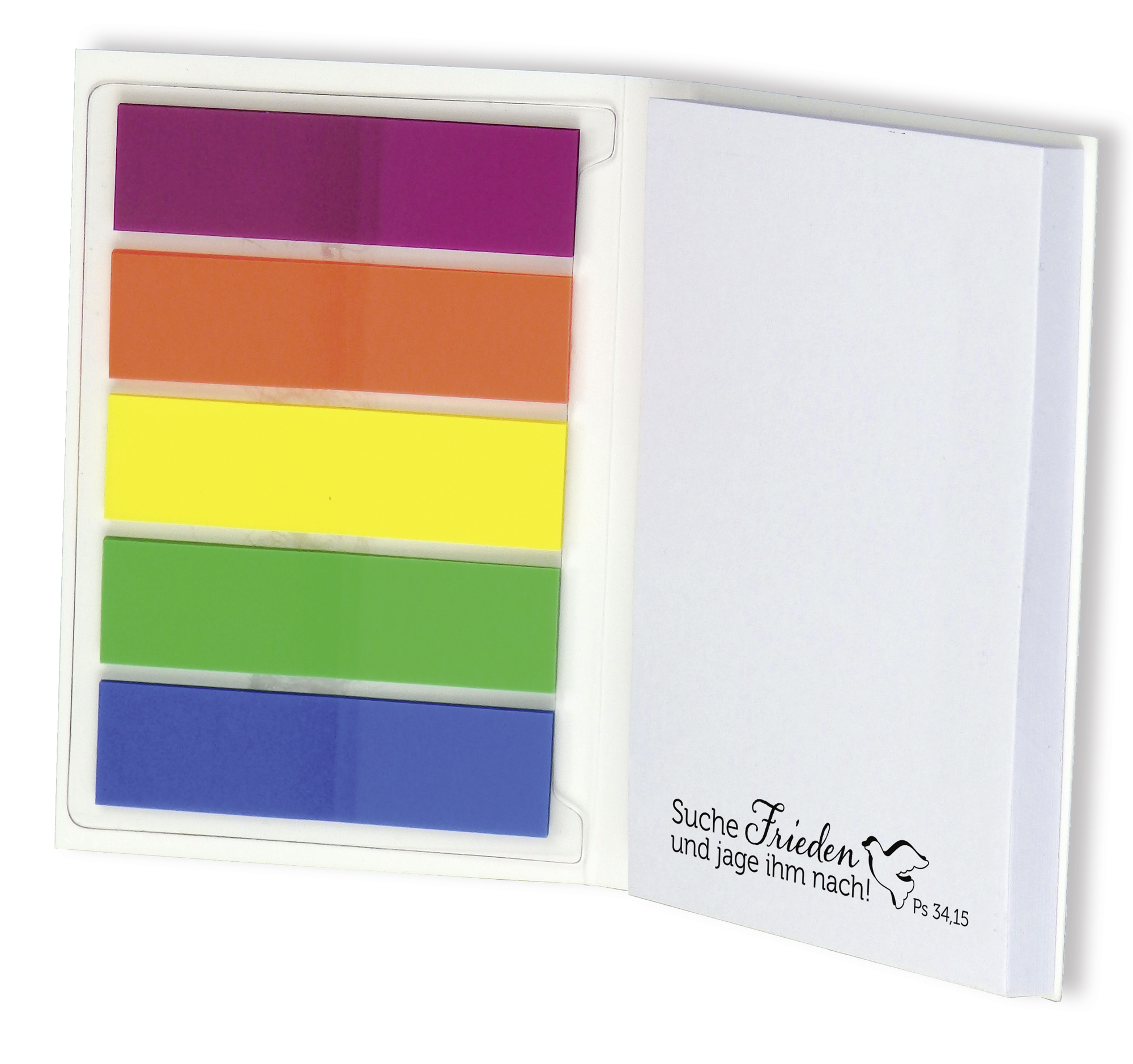 Haftnotizblock mit 50 Blatt plus 5 verschiedenfarbige Folienmarkern à 20 Blatt, Softcoverumschlag, 5,2x7,7 cm