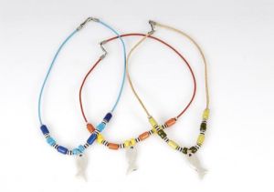 Halskette mit verschiedenfarbigen Perlen und Anhänger "Fisch".