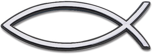Ein schöner Aufkleber mit 3D-Effekt. Reliefaufkleber "Fisch" mit dem Ichthys-Symbol als erhabenes Motiv in Silber. Der Aufkleber schmückt jedes Auto und passt farblich nahezu zu allen Lackfarben. Selbstklebend, 13 cm, silberfarben