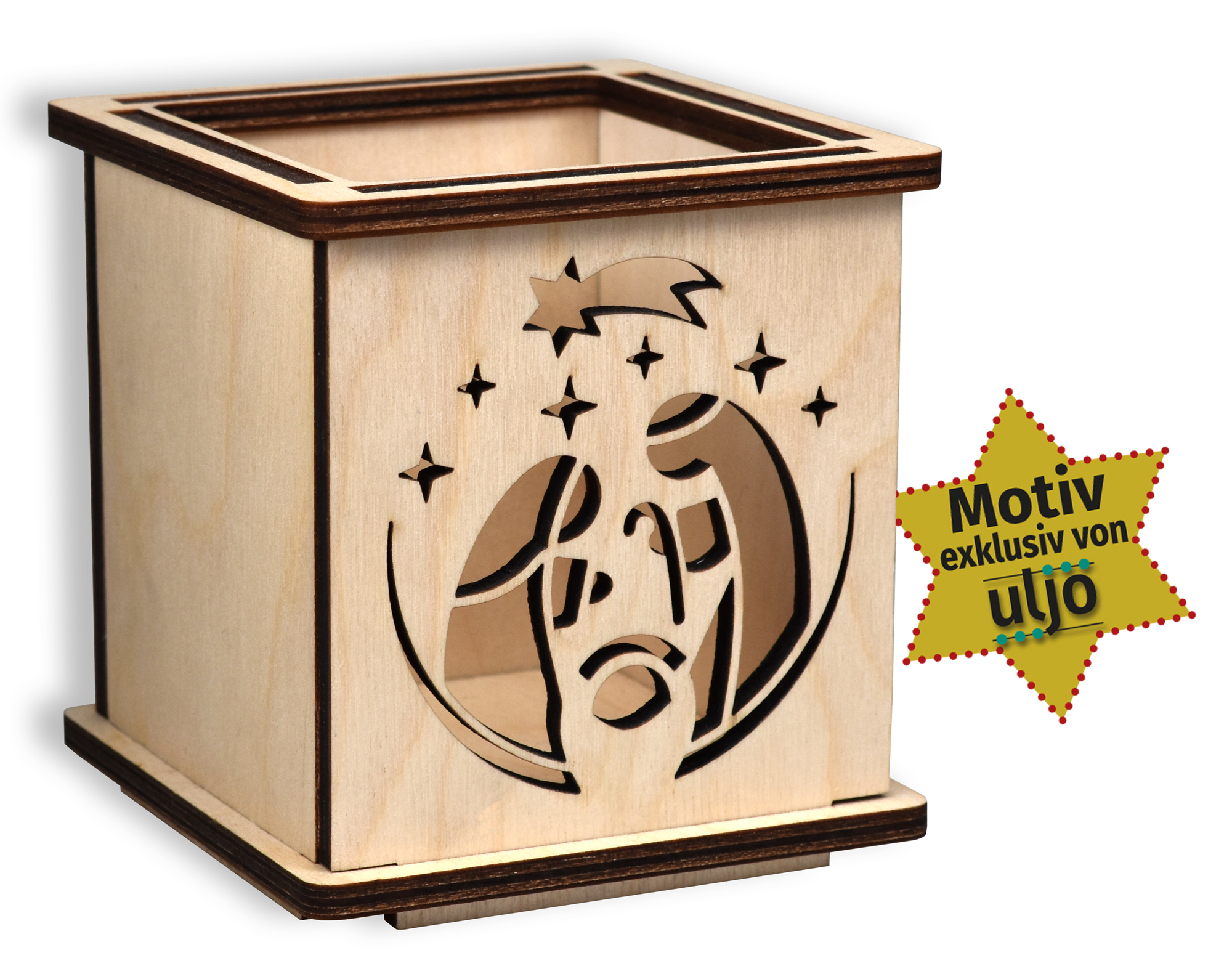 6-teiliges Windlicht mit ausgesägten Krippen Motiven (exklusives Uljö-Design) für stimmungsvolles Kerzenlicht zur Advents- und Weihnachtszeit. Zum kinderleichten Zusammenstecken ohne Werkzeug inkl. Steckanleitung. Auch zum Verschicken geeignet.