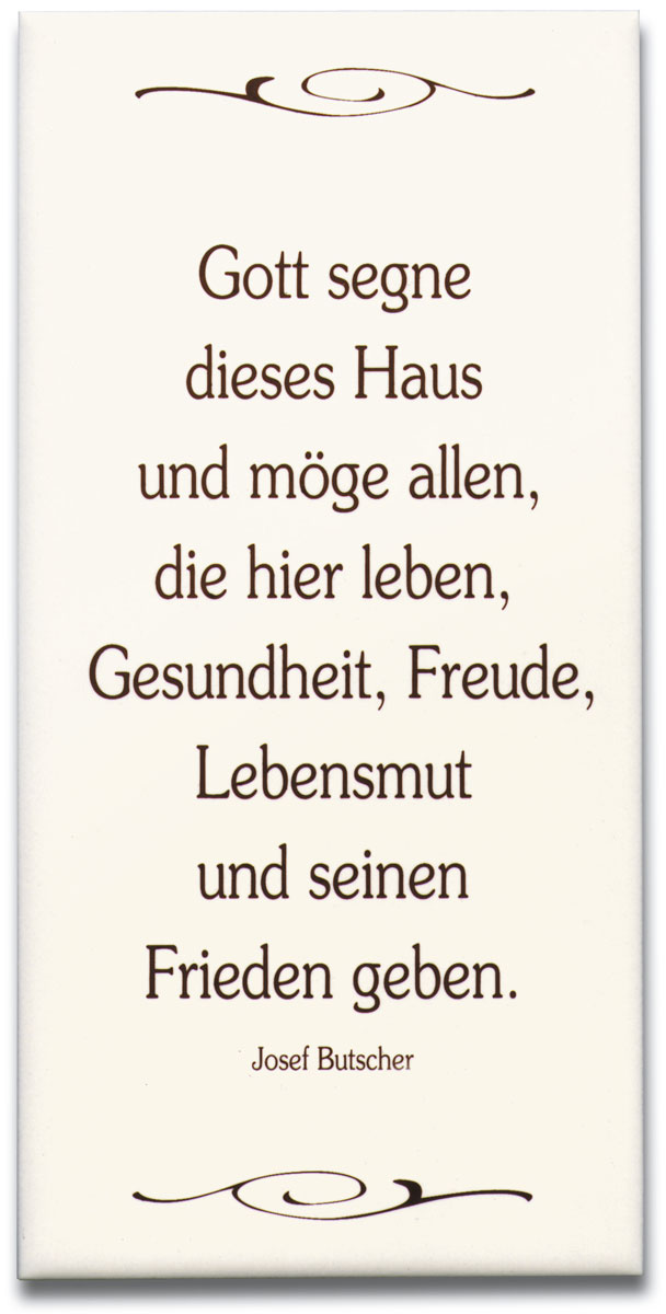 Format 10 x 20 cm, in Geschenkverpackung, mit Text: "Gott segne dieses Haus und möge allen die hier leben, Gesundheit, Freude, Lebensmut und seinen Frieden geben."