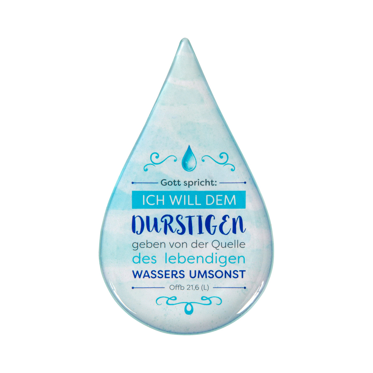 Zum Text der Jahreslosung 2018 passt dieser Magnet in Tropfenform hervorragend.