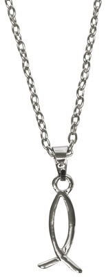 Ichthys-Fisch-Anhänger an einer Metallkette. Kettenlänge: 40 cm