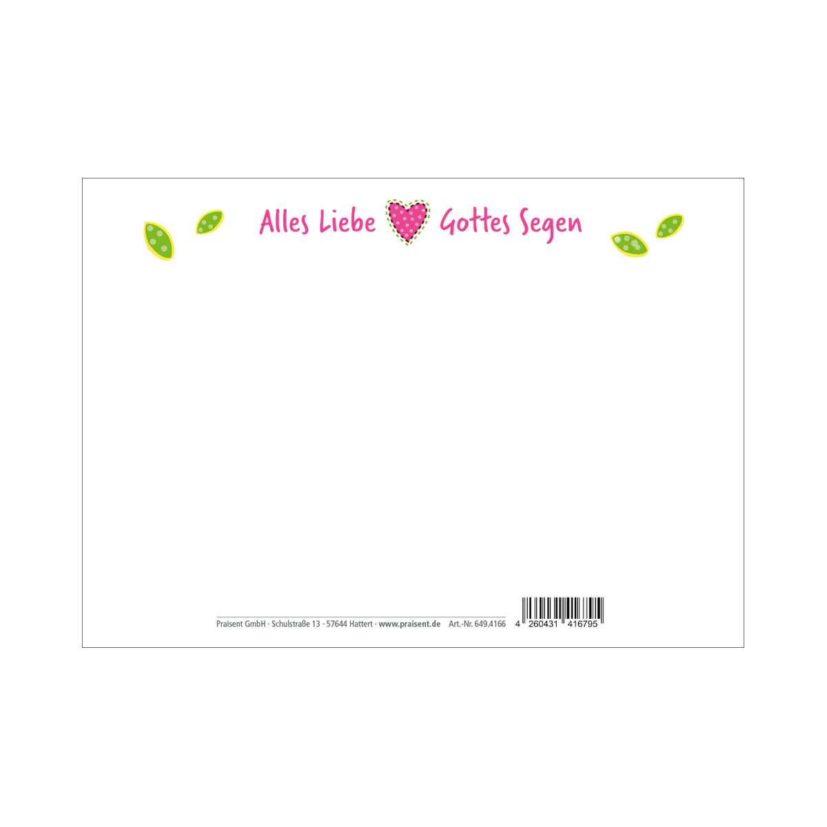 Buntes Eulenmotiv auf der Vorderseite, auf der Rückseite der Text: "Alles Liebe & Gottes Segen".