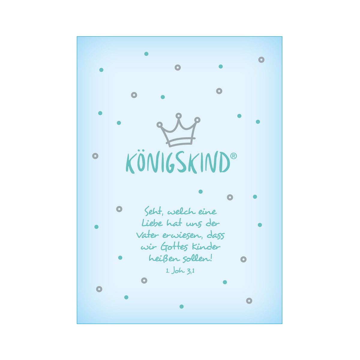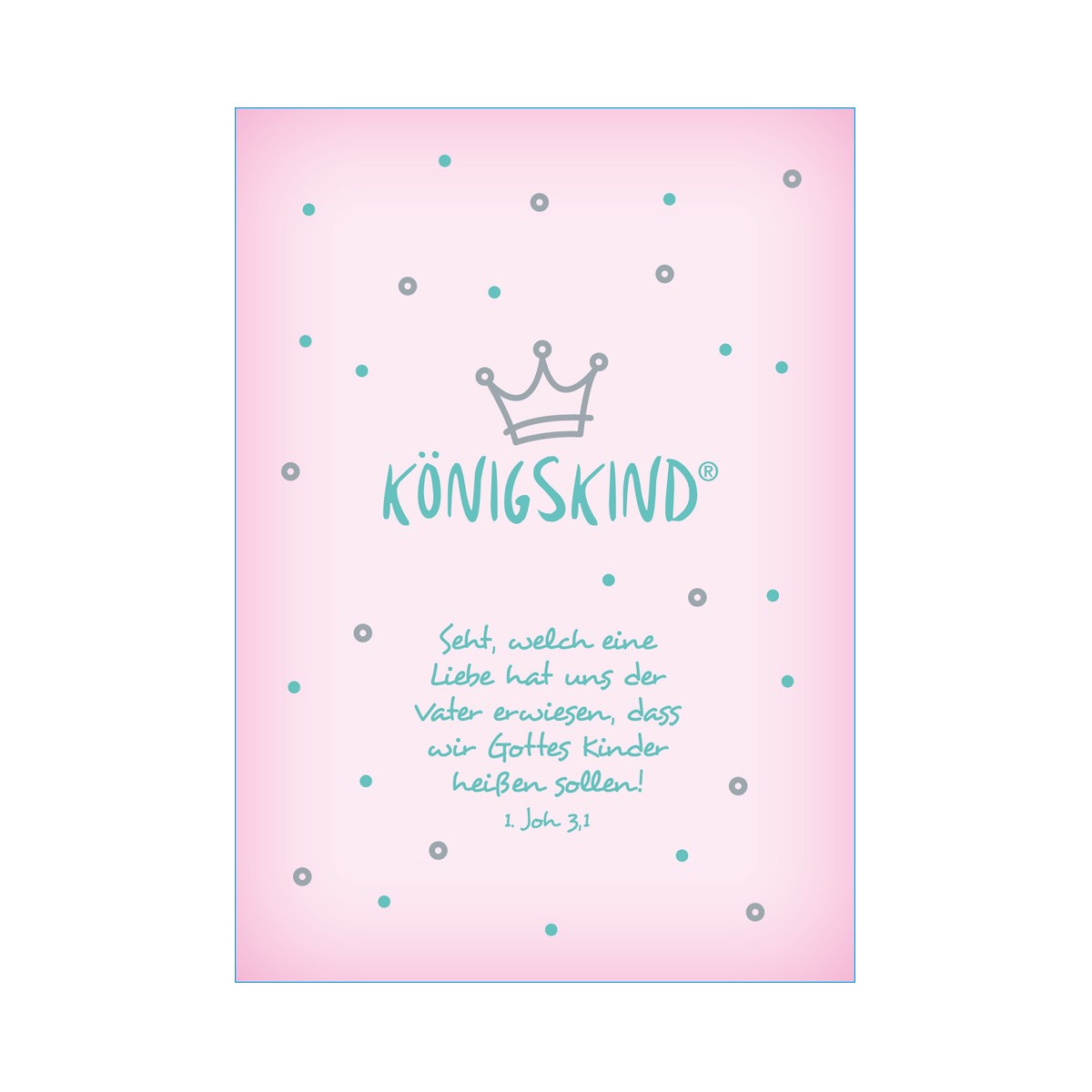 Vorne auf der Karte unser Königskind Design mit Bibelvers aus 1 Joh 3,1.