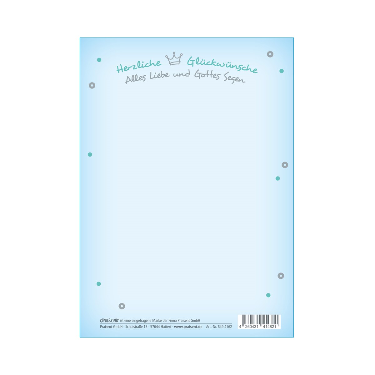 Auf der Rückseite der Text: Herzliche Glückwünsche, alles Liebe und Gottes Segen!