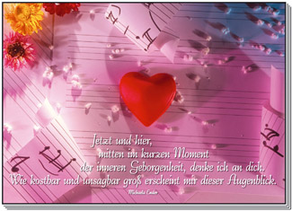 Jetzt und hier, mitten im kurzen Moment der inneren Geborgenheit, denke ich an dich. Wie kostbar und unsagbar groß erscheint mir dieser Augenblick. Michaela Ender