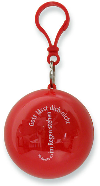 mit Kapuze, in Kugel, 7 cm, Karabine „Gott lässt dich nicht im Regen stehen“ (Ps. 91,1) und unser Regenponcho mit Kapuze auch nicht.