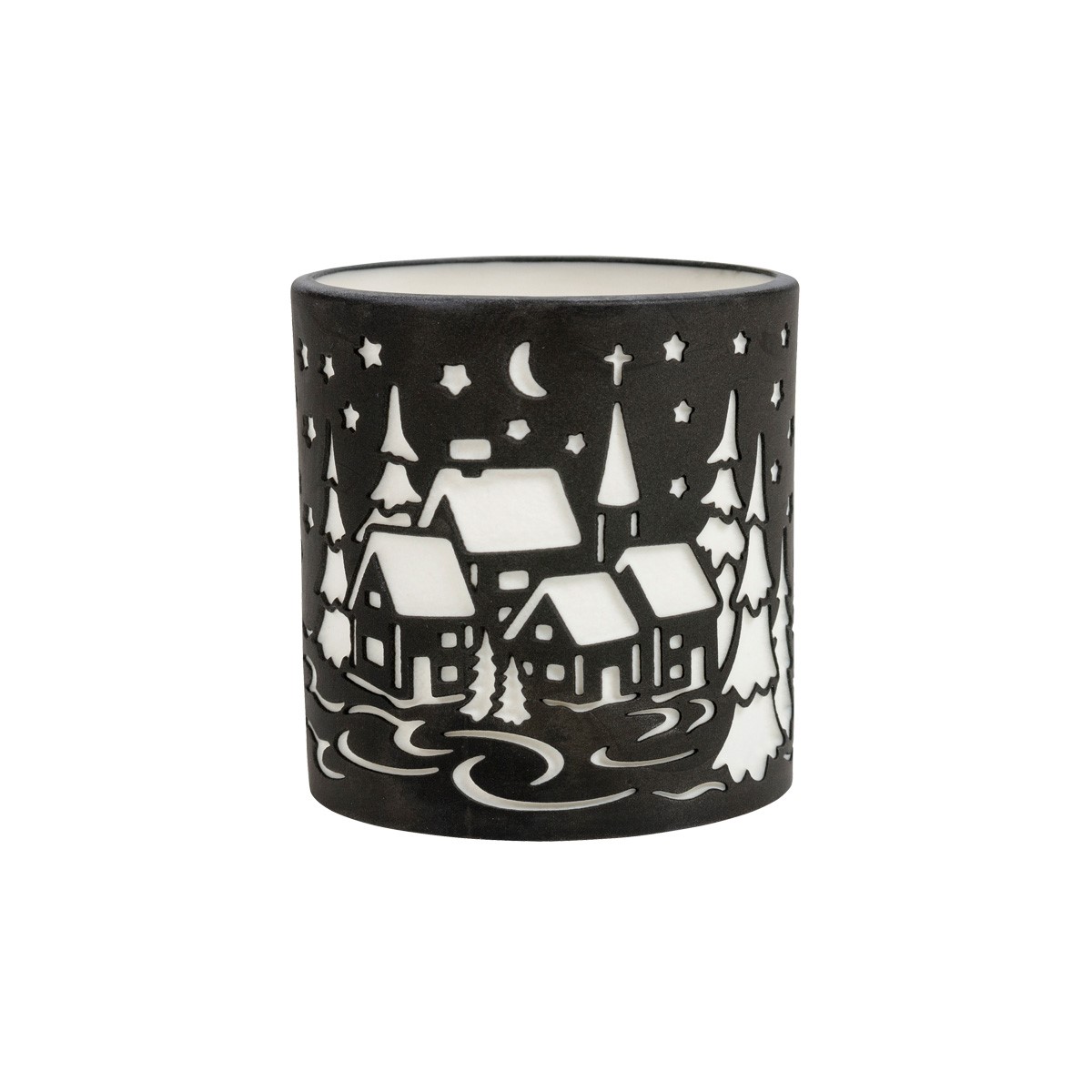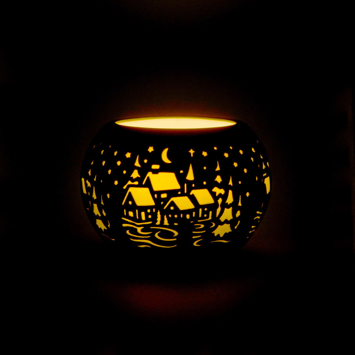 Porzellan gelasert, so das das schöne Motiv in weiss durchscheint.